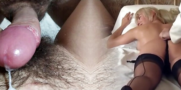 Poking nanny’s moist mammary pussy and nutting on her arse