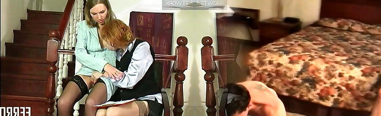 Big Bosoms Hot Blonde Boss gets caught by Big Rump Hot Brunette Assistant in Garter and Stockings in The Office