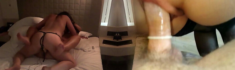 I fuck my stepbrother's girlfriend with a meaty cord-on, put her on all fours and blow the dildo