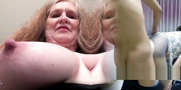 Oma mit grossen Nippel und behaarter Slit bekommt endlich dicken Schwanz