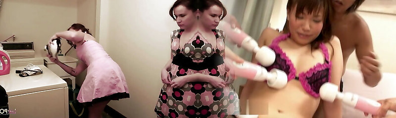 A gang of horny lesbians in sexy gear fuck with toys in bed