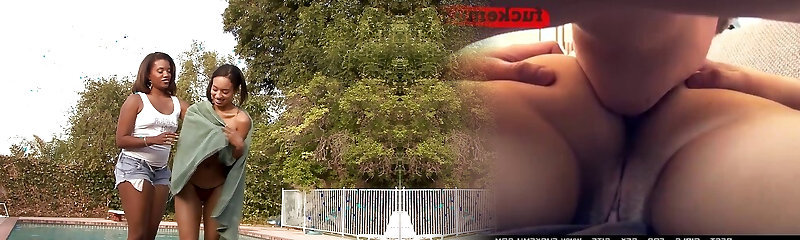 Thick booty black slut licks her girlfriend's strapon and fucks