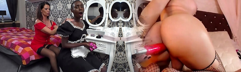 Steamy ebony lesbians dildo fuck each other