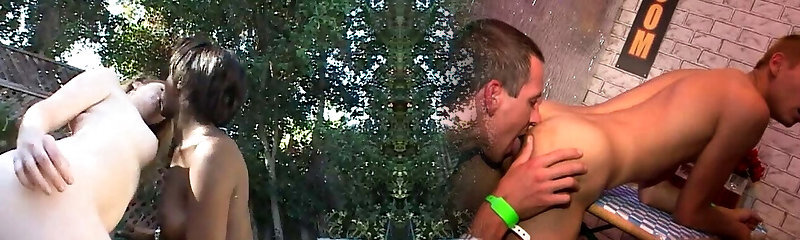 Ebony and white lesbian sluts drilling outdoors