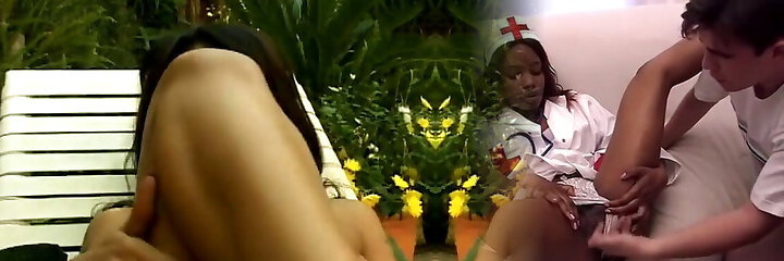Ebony Lesbians Bring A Smallish White Teen Into Their Bedroom