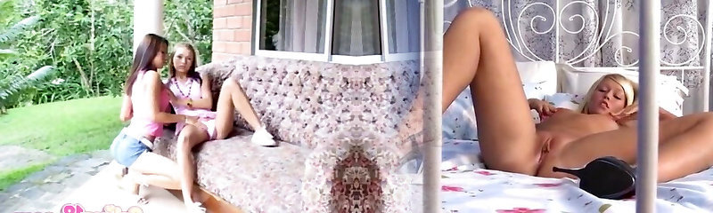 Platinum-blonde lesbians try testing out sex toys on each other after licking their wet lesbians pussies