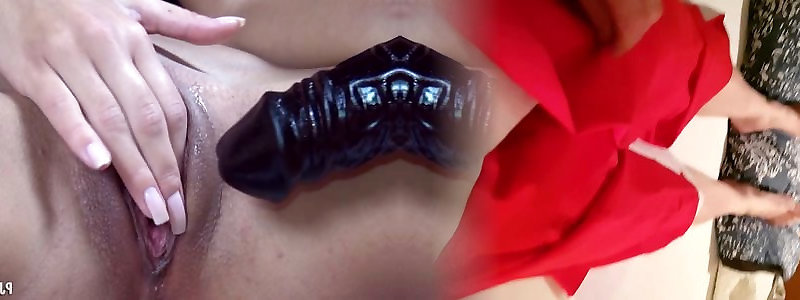 Super-fucking-hot masturbation tease with marvelous red linegie