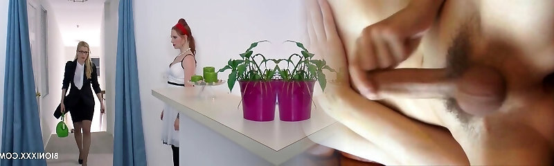 Rude redhead chief takes advantage of her submissive lesbian employee by stuffing her with a strapon
