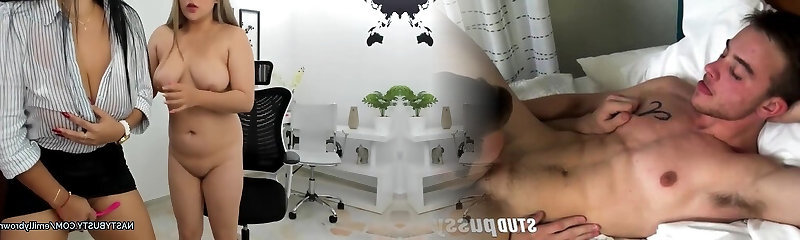 Big Tits Brown-haired Boss in Hot Lingerie and Black Stockings teases and seduces her new Blonde Secretary for Lesbian Sex