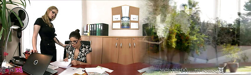 Big Bosoms Hot Blonde Boss gets caught by Big Rump Hot Brunette Assistant in Garter and Stockings in The Office